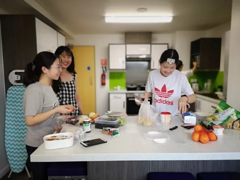 一天的学习任务结束后,同学们前往超市购置晚饭食材,以小组为单位,烹饪自己在英国的第一顿晚餐。虽然很多同学都不太擅长下厨,但最后在大家的共同努力下,每个人都品尝到了美味的晚餐。