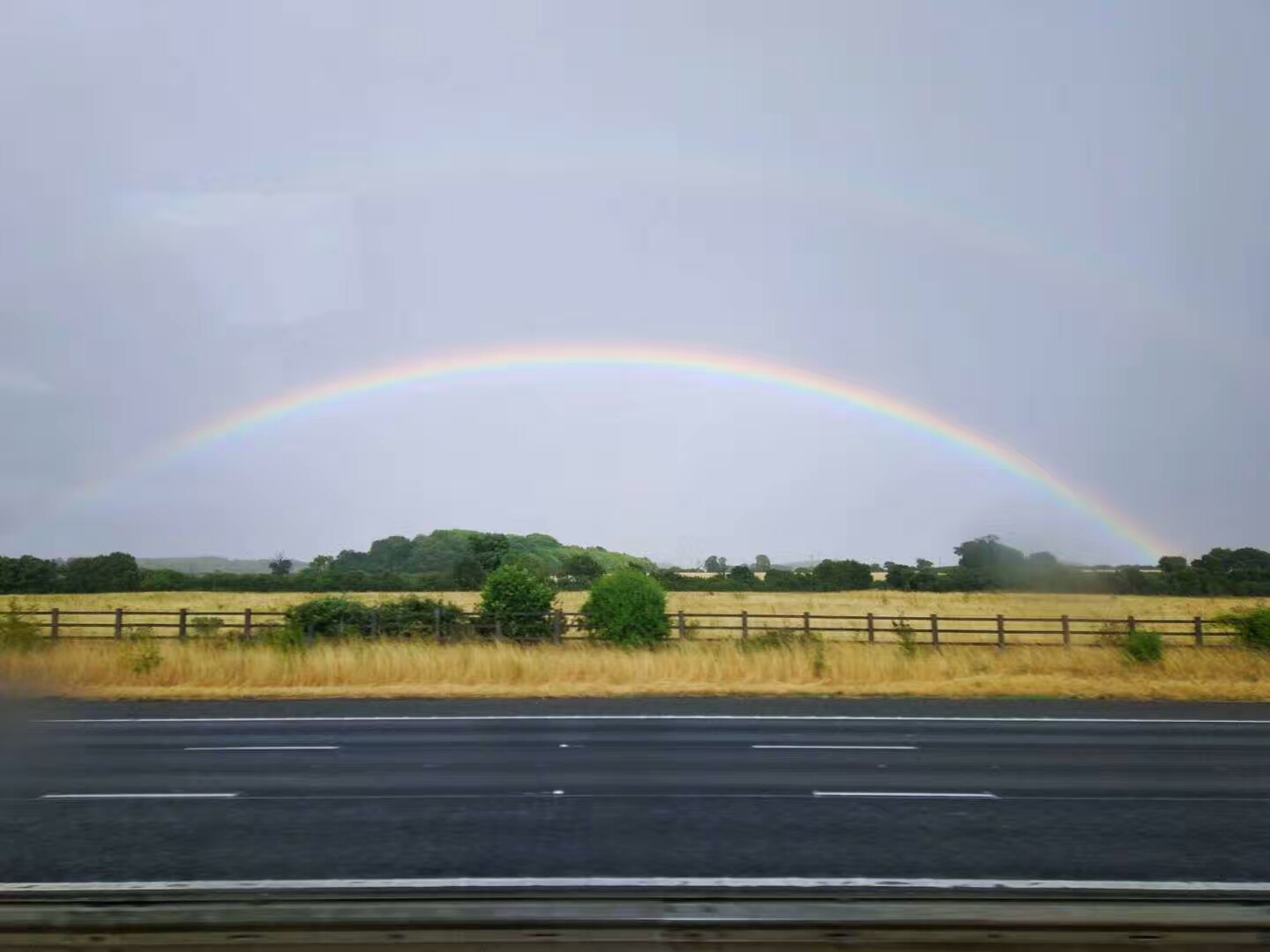 英国时雨时晴的天气让人捉摸不定。雨声潺潺,时急时缓;雨后蓝天,微风拂面。回程路上,大家邂逅一道彩虹,童话一般的景象倏忽出现在眼前,如梦似幻。