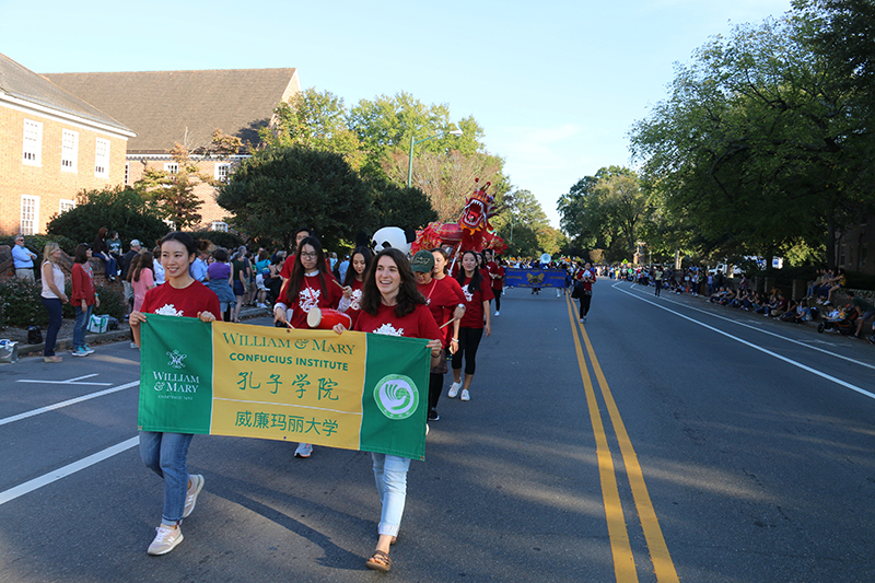 “大学校友返校日”作为威廉玛丽大学一年一度最盛大的庆祝活动,一直以来都受到在校生、毕业校友以及威廉斯堡居民的热切关注,返校日的花车游行活动更是威廉斯堡小镇的盛事之一。今年10月22日,威廉玛丽大学孔子学院再次组成“孔子学院”方队参与到“花车游行”活动当中,并开放孔子学院,设置文化体验区,再一次向当地居民和威廉玛丽师生展现了中华文化的巨大魅力。