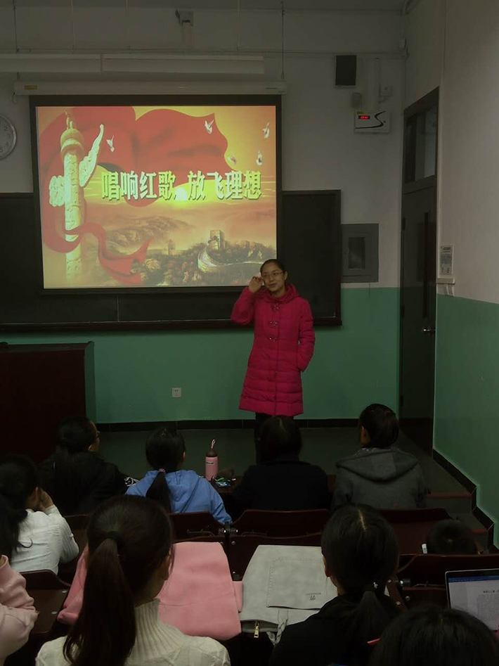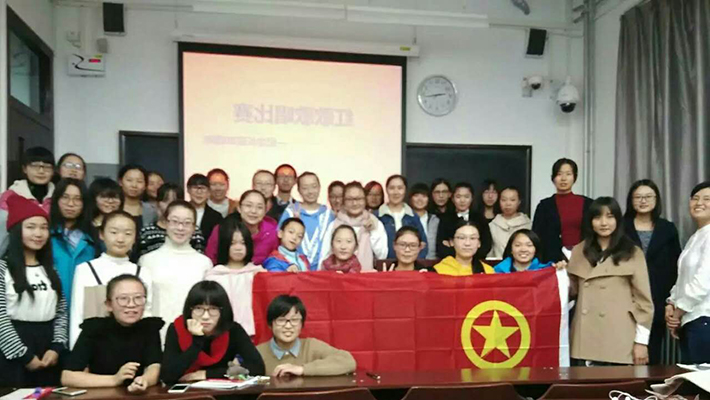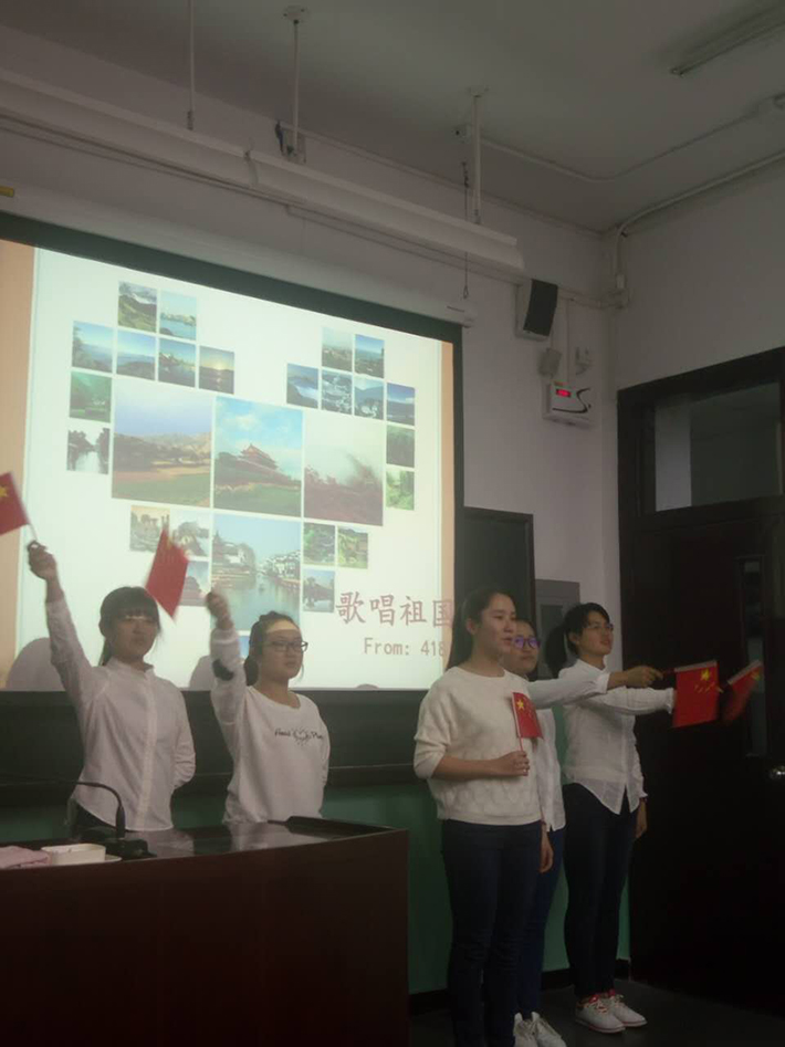 2016年11月4日晚,外文学院2016级英专三班的同学们在教十楼108教室开展了庆祝长征胜利80周年的红歌比赛活动。班主任于洋老师作为特邀嘉宾携家属到场,和同学们一起度过了一段美好而难忘的时光。
