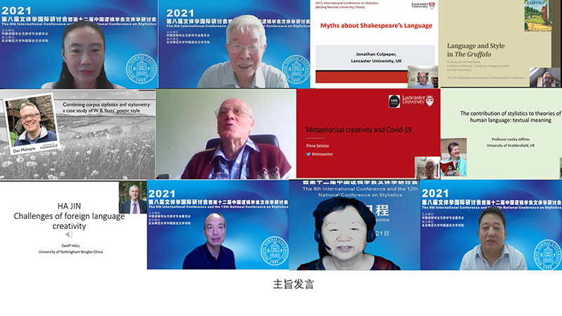 大会主旨发言专家围绕“文体学研究的创新与发展”这一主题做了精彩的学术报告,既有新理论和新方法的探索,也有围绕当下社会热点的文体学研究,呈现了当前国内外文体学研究的新理论、新方法和新趋势。申丹教授以“三重表意轨道和三重文体探讨”为题,揭开了此次研讨会的序幕,展现出当前中国学者引领此领域前沿的研究成果。辛斌教授以“美国媒体关于‘一带一路’的报道”为题,从批评话语分析的视角分析了中美新闻报道的不同语篇特征。Culpeper教授通过语料库文体学研究方法揭示出莎士比亚语言和文体特征,进一步印证了语料库方法之于文体学研究的重要性。Burke教授借助经典修辞学研究方法和口述性理论分析了儿童绘本The Gruffalo中的语言和文体特征。McIntyre教授采用语料库文体学研究方法分析了爱尔兰诗人叶芝作品语言和文体上的历时性转变,论证了文体学分析之于文学批评的启示。Goatly教授从隐喻和转喻的角度分析了Gerard Manley Hopkins和Edward Thomas两位诗人诗歌所蕴含的哲学内涵。Semino教授探讨了新冠肺炎疫情中隐喻表达的文体特征及其认知机制。Jeffries教授从文体学对人类语言理论的贡献切入,探讨了文体学研究的学科特征,强调了文体学的学科地位及未来发展问题。Hall教授从哈金作品的文体特征入手,研究了第二语言使用的创新性及其所面临的挑战。封宗信教授从语言使用和外语教学的角度探讨了文体能力的内涵和文体能力的培养。吕中舌教授通过对伍尔夫意识流小说《达洛维夫人》的文体学分析,研究了小说中思想呈现的方式及其文体效果。苗兴伟教授运用生态文体学的理论和方法分析了威廉姆斯的自然文学作品《心灵的慰籍》中的生态思想及其语言表达的文体特征。作品通过人与自然的生态融通将自然史和家族史融为一体,作品中拟人化和生态化的语言手段将人与自然的生态融通前景化并以此将自然史和家族史的叙事向前推进。