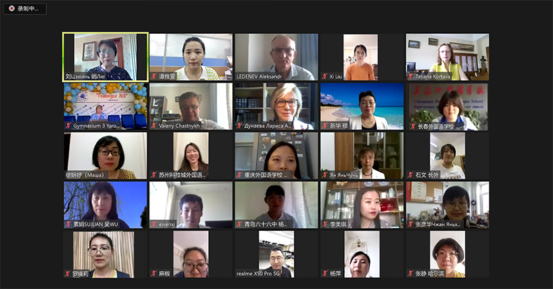 本次比赛共有25所中学的43个团队和个人获得奖项。宣读获奖名单后,来自济南外国语学校和长春外国语学校的师生代表分别做了大会发言,师生代表的真诚发言打动了现场参会的嘉宾和其他参赛者。随后举行的教师技能大赛获奖者课程展示中,来自济南外国语学校的徐妍妤老师、邹宁老师和重庆实验外国语学校的余厚春老师进行了现场说课,向大家分享了丰富的教学经验和技巧。由“传承杯”获奖选手演出的线上音乐会将活动推向高潮。中俄中学生倾情演唱的中俄经典歌曲“莫斯科郊外的晚上”“山楂树”“故乡的云”等让在场的观众无不深受感动。