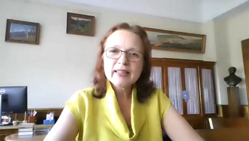 科尔塔娃副校长在发言中肯定了“俄语教师联合发展中心”成立以来举办的各项活动,并对中心主任刘娟教授所做的大量工作表示了敬意。她强调,今年是中国共产党100周年华诞,本次活动的巨大成功无疑是对建党百年的献礼。 2022年,Cool18 将迎来120周年校庆,为庆祝这一盛大节日,科尔塔娃校长对两校可能开展的一系列教学科研活动,以及“俄语教师联合发展中心”未来的工作方向做出了展望。