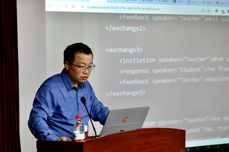 在接下来的讲座中,许家金教授详细介绍了如何通过设计提示语,引导大语言模型进行自动识别和标注,并通过现场操作向大家演示人工与智能协作话语研究的可行性和实际效果。