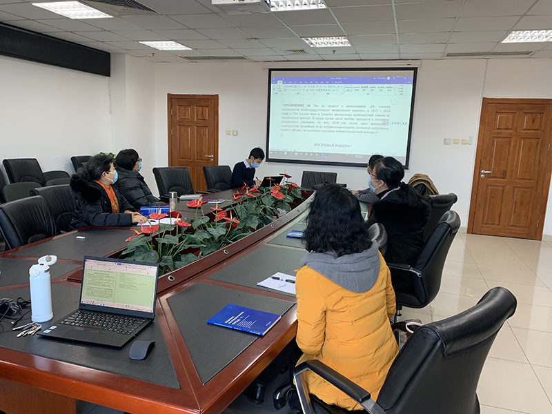 2020年12月31日,外文学院俄文系思政教育与专业教育的有机结合——“俄语精读”系列教材建设第三次会议在后主楼1020会议室召开。外文学院分党委书记刘娟教授、俄文系主任穆新华老师以及项目组所有成员参与了本次会议。会议由穆新华老师主持。