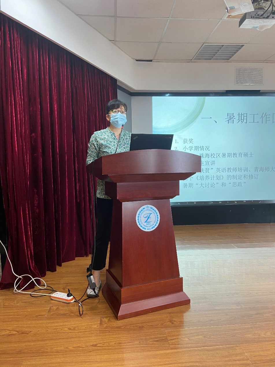 新学期师生得以回归线下教学与学习,王楠老师带参会老师展望了新学期的常工作,包括上学期的试卷归档、非师范生的教育实习和专业实习、公费师范生的教育实习、毕业班学生的论文指导、研二学生的开题、研究生推免、本科新生导师、年底考核等常规性工作,以及将在10月份由学院举办的中国英语教学国际研讨会,参加师范生联盟举办的教学比赛等大型活动。
