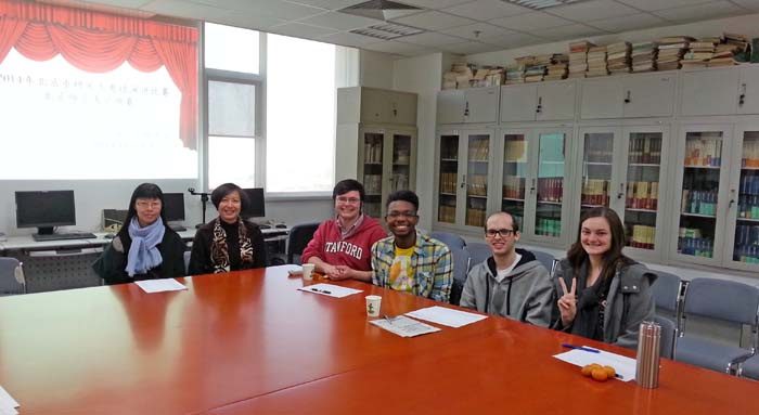 2014年11月14日下午,北京市研究生英语演讲比赛北师大赛区预选赛在后主楼1016顺利举行。本次比赛包括“定题演讲”和“现场问答”两个环节,定题演讲的题目是"Make a difference"。比赛评委由Cool18 的中籍教师孔京京、苏健,和外籍教师, Ms. Sara Rock, Mr. Devante Keith和Mr. Aaron Levin共同担任;外籍教师Mr. Patrick McGuire负责本场比赛的提问环节。