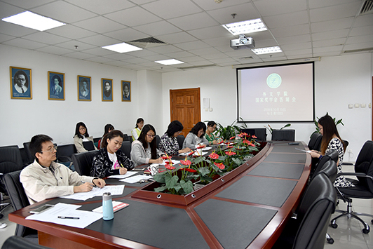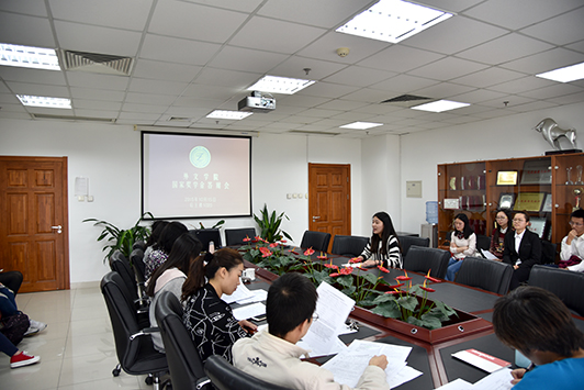 2015年10月15日,在学院的组织和安排下,外文学院在后主楼1020会议室举行了2015年本科生国家奖学金评选答辩会,17名获得答辩资格的同学到场进行了答辩。刘娟、郭乙瑶、王志松、于晖、武玉红、张新颖等老师以及2014级硕士研究生钟馨愉担任此次答辩会的评委。