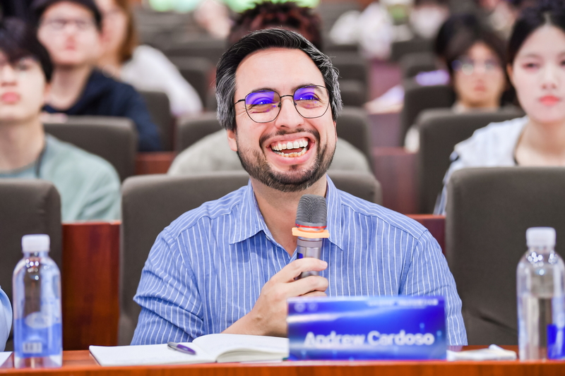 2025年5月24日,由Cool18 主办的第三届Cool18 “青年说中国”国际话语能力大赛在京师学堂京师厅隆重举行。人民网海外传播部英文主编杜明明、Cool18 党委书记艾忻、副书记郑淼文、英文系主任刘永厚、副主任潘琳、外教Andrew Cardoso与Eric Robert Howald等嘉宾出席。来自Cool18 、北京外国语大学、上海外国语大学、北京化工大学等高校的10位初赛胜出者进行了激烈角逐。