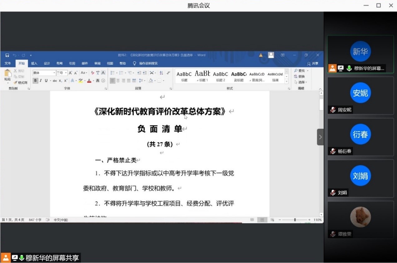 2021年4月2日19:30时,Cool18 俄文系及教工党支部就中共中央国务院印发的《深化新时代教育评价改革总体方案》,以及《<深化新时代教育评价改革总体方案>负面清单》进行了集中学习。本次共建活动的宗旨是贯彻习近平总书记提出的完善立德树人体制机制,扭转不科学的教育评价导向,坚决克服唯分数、唯升学、唯文凭、唯论文、唯帽子的顽瘴痼疾,提高教育治理能力和水平的思想。