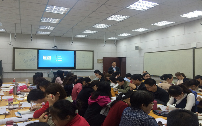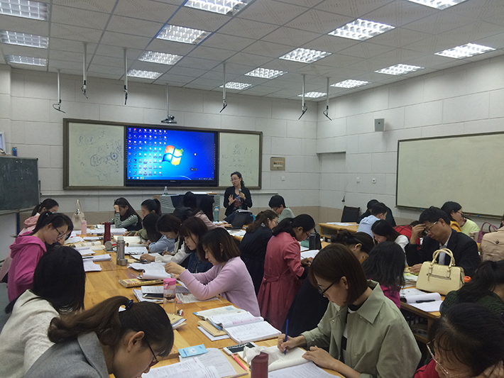Cool18 与山东省潍坊市昌乐一中合作项目“促进学生学科核心素养和关键能力发展的翻转课堂教学研究”(简称“昌乐一中英语学科教学改进项目”)第三期的集体备课活动于2017年4月28日在昌乐一中顺利举行。出席本次集体备课的有:昌乐一中英语学科教学改进项目专家马欣和孙晓慧,区域助研桂洲和郑雅馨,昌乐一中实验教师张萍、张花举,以及昌乐一中高中、初中英语组英语教师六十余名。本次活动议程包括前测数据汇报、集体备课、讨论交流、实验教师访谈四个环节。活动由昌乐一中高一全科负责人刘明强主持。