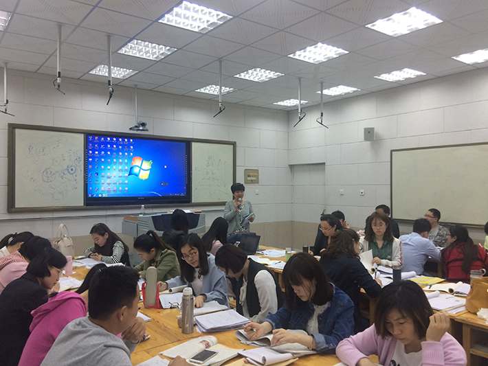 实验教师和备课组老师对专家的建议进行了充分的思考和讨论。针对老师们对细节的进一步提问,马欣老师播放了一个语法教学视频样例作为参考,得到了大家的热烈欢迎。