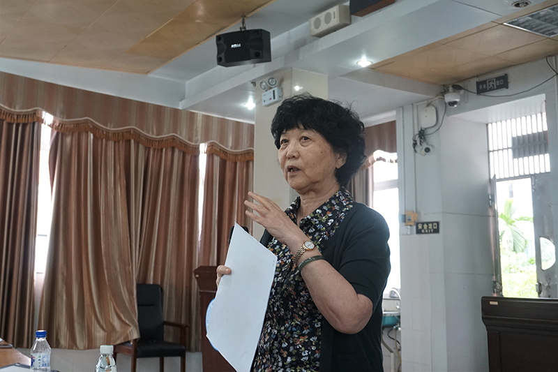 试讲结束后,王蔷教授、钱小芳副教授分别进行评课。王蔷教授首先对四位老师的课堂给予了肯定。她指出,两堂课逻辑连贯,思路清晰,课堂活动之间衔接自然,教师反馈及时恰当。同时,王蔷教授还提出一些建议,希望教师在备课时抓住文本关键词,即“课眼”,使课堂意义探究的主线更加明晰;教师在课上要引导学生结合语境学习文本中的生词和富有表现力的句子,做到“得意”的同时也要“得语”。钱小芳副教授结合新课标中提出的六要素整合的课程内容,为教师剖析了在文本解读和课堂设计中可以继续深入挖掘的内容要点。
