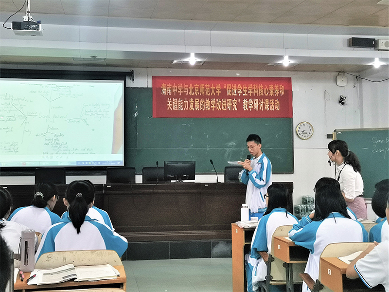 2020年秋季学期,Cool18 外语教育与教师教育研究所与海南中学就“促进学生核心素养和关键能力发展的教学改进研究”项目开展合作。11月5日,我所王蔷教授、钱小芳副教授赴海南中学观摩试讲课、评课,并带来专题讲座。在本次教学改进活动中,海南中学2020年春季、秋季学期参加该项目的四位教师依次进行正式讲和试讲。来自海南中学英语组的老师、三亚分校英语组的老师以及海口市其他高中的英语教师参与了此次活动。