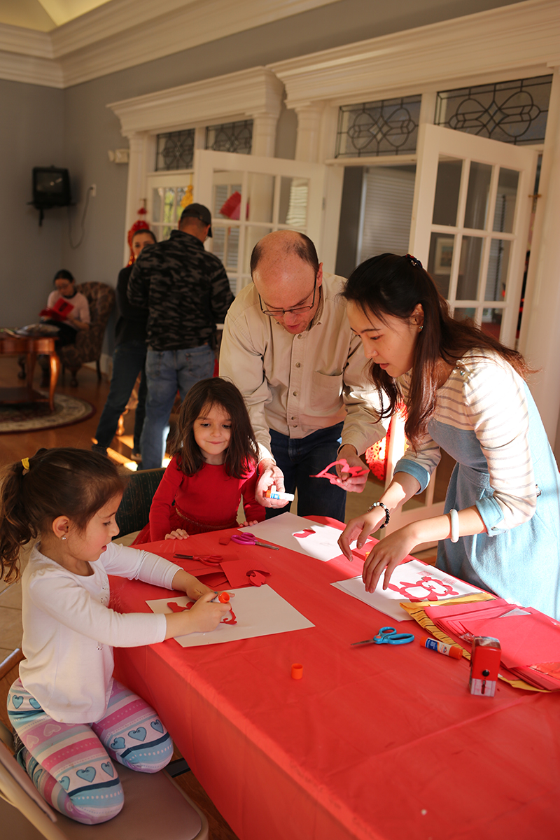 当地时间2月18日,农历正月初三,威玛孔院协助威廉斯堡中文学校共同举办了“迎新春联欢会”。联欢会伊始,志愿者教师戚碧云、梅婷婷、高凯燕分别以剪纸、书法等文化活动带领孩子们体验浓浓“年味儿”,而现场的中国家长们则手把手教起外国家长们“包饺子”,其乐融融。