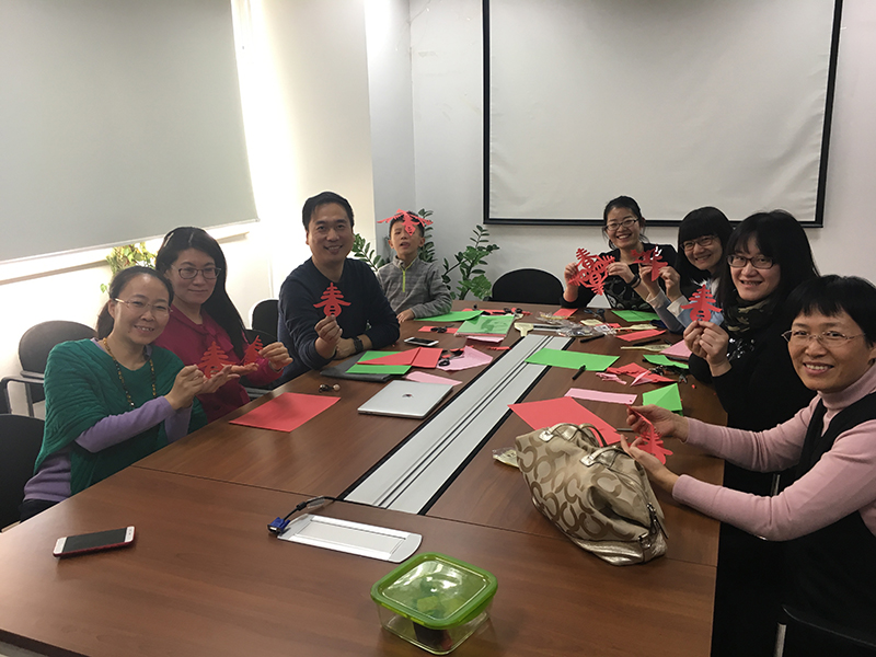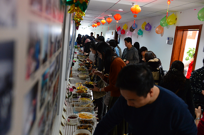 总结大会结束后,学院办公室和院工会随即举行教师团拜会,院工会为本命年的老师发放了小纪念品,各位教师携带自己提前做好的主食、菜肴、水果、甜点等,与其他教师共享午餐。午餐会结束后,教师们在各个活动室开展剪纸、书法、乒乓球、象棋、扑克牌、卡拉OK等集体活动,现场氛围热烈,活动受到全体教师的一致好评。