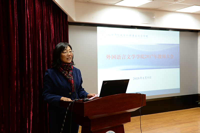 2018年1月5日上午,外文学院在后主楼914会议室举行了2017年度工作总结大会。学院党政班子全体成员和院系教职工共70余人参加了大会。大会由分党委书记刘娟主持。