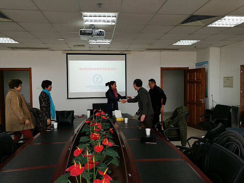 2017年11月19日,后主楼1020学术活动室迎来了英语专业80级(84届)部分校友。他们是邓颖(后转入79级)、葛启明、魏怡平、王梅雁。80级的班主任赵凤荣老师也前来与大家欢聚。80级留校的李争鸣、林洪(日语)迎接了校友回家。老同学相见,格外亲切,畅叙友情,回忆恩师。林洪为大家播放了学院的宣传片。随后,大家前往实习餐厅午餐。席间,当年校合唱团的魏怡平为大家倾情演唱了《我爱你,塞北的雪》,其他同学随声附和,把聚会的气氛推向了高潮。校友们纷纷感概学校的变化、学院的发展,也提供了很多卓有成就的校友信息,表示愿意回来向在校的师弟师妹们传经送宝。林洪转交了学院为校友们准备的礼物。大家表示今后要常回家常聚。