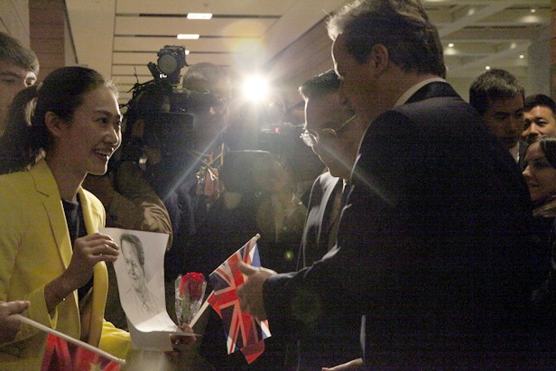 博士生张萌代表中国青年欢迎英国首相卡梅伦到访