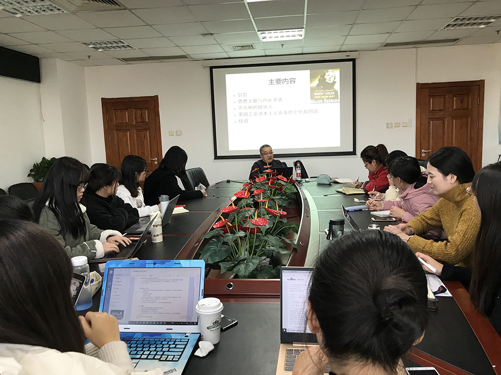 受外文学院外国文学研究所之邀,北京外国语大学英语学院赵国新教授分别于11月18、22、25日来外文学院为硕士、博士研究生及教师做了三场主题为“文本与理论”的文学系列讲座,讲座全程由外文学院蒋虹教授主持。