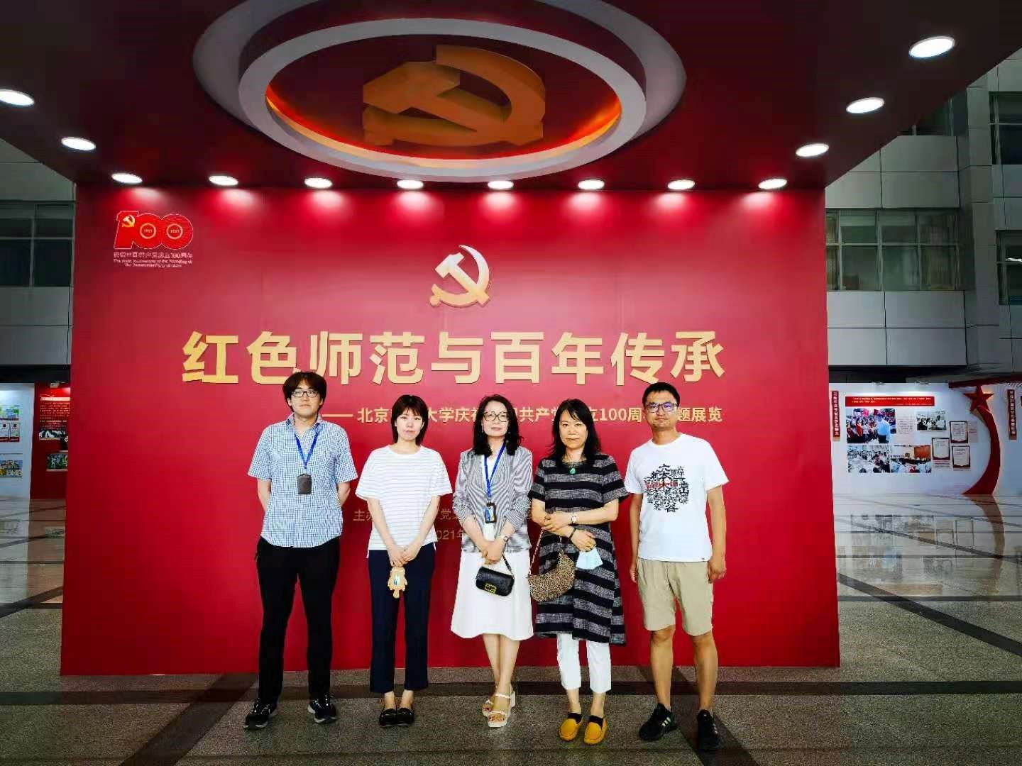 会后,参加线下会议的党员教师、非党员教师及外籍教师一同前往主楼四季厅,参观了“红色师范与百年传承”主题展览。