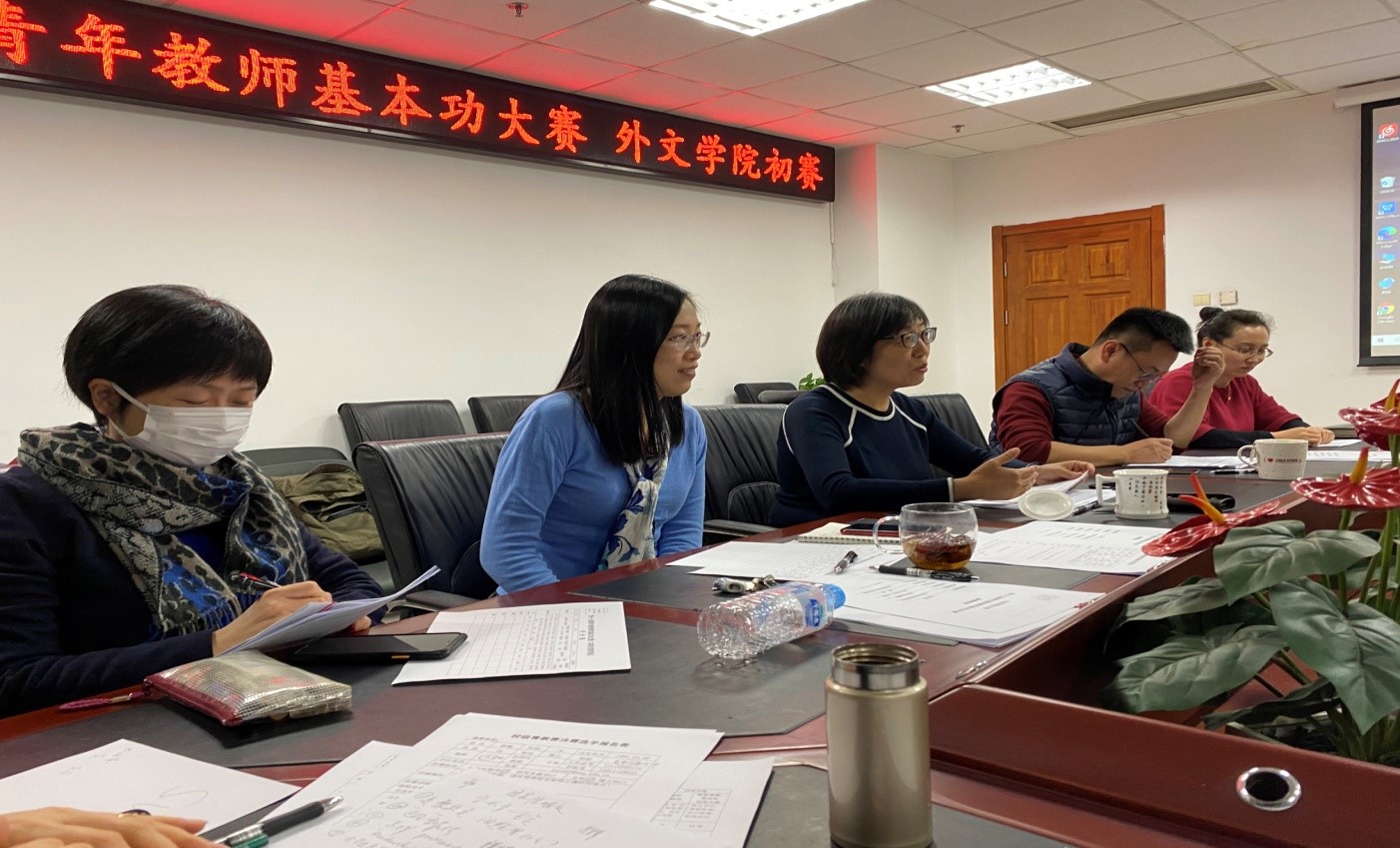 在校工会指导和关心下,外文学院工会于2020年12月14日成功举办第十七届青年教师教学基本功大赛预赛。本次大赛有四位青年教师参赛。初赛邀请了学院七位教师担任评委。来自艺传、生科等学院的老师到场观摩。