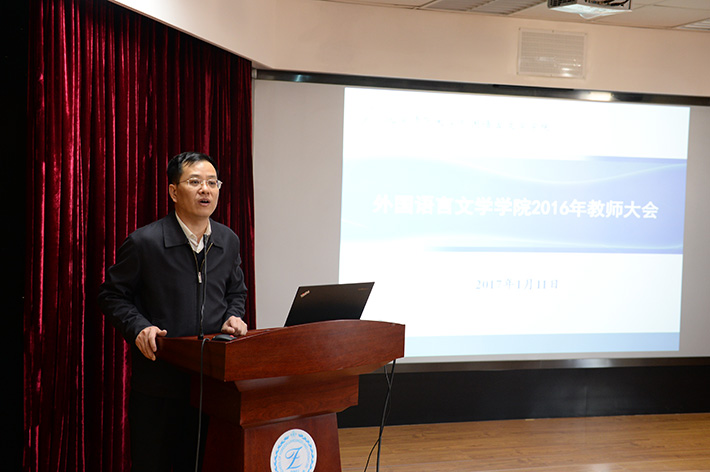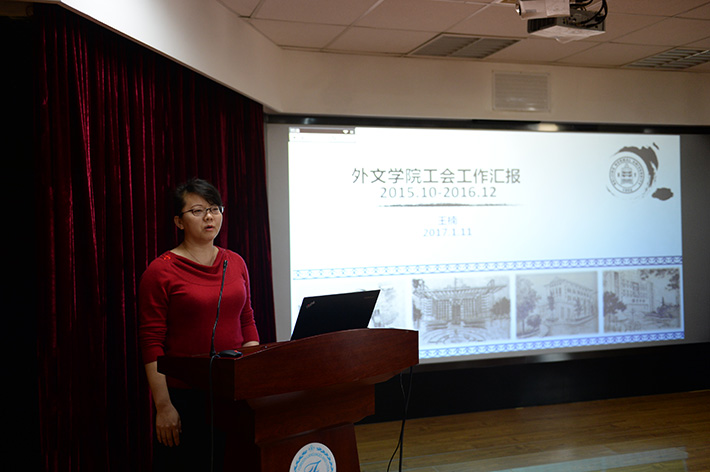 总结大会上,学院党政班子部分成员先后向与会人员做述职报告。分党委书记兼副院长刘娟重点介绍了学院分党委工作、本科生教学工作、教育部区域和国别研究培育基地俄罗斯研究中心工作;分党委副书记亓振华重点介绍了学生工作情况;工会主席王楠详细汇报了工会工作的开展情况,并向全体老师介绍了2017年院工会的重要活动;致公党北京市委常委、北师大支部主委、日文系教授宛金章老师,向大家详细介绍了近年来积极参加致公党对宁夏吴忠市的帮扶工作情况;副院长苗兴伟向大家分享了课题申报的选题与论证经验。