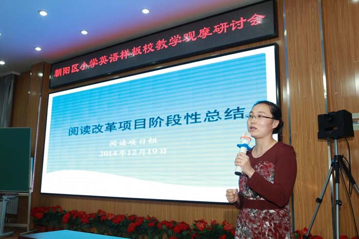2014年12月19日,由Cool18 、北京市朝阳区教研中心联合举办的朝阳区小学英语特色样板校教学观摩研讨会在芳草地国际学校成功举行。Cool18 院长程晓堂教授、王蔷教授、罗少茜教授、陈则航副教授、马欣老师、钱小芳老师、孙晓慧老师,朝阳区教研中心教研员李大生,以及样板校项目学校的领导及实验教师出席了研讨会。参加研讨会的还有北京市其他小学的领导和教师等。