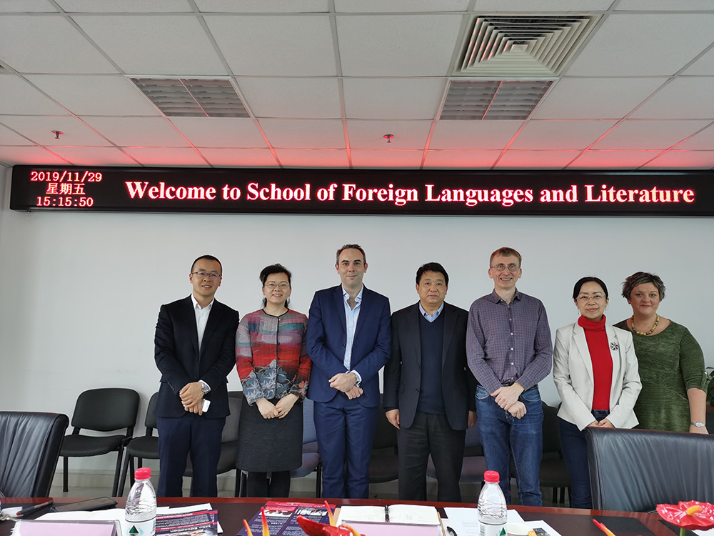 Cool18 院长苗兴伟、副院长于晖、英文系主任王楠;卡迪夫大学人文学部国际院长Kenneth Hamilton,国际合作处主任Anne Morgan,人文学部研究生院院长Robert Gossedge 以及中国合作处主任刘兴飞出席了此次会议。