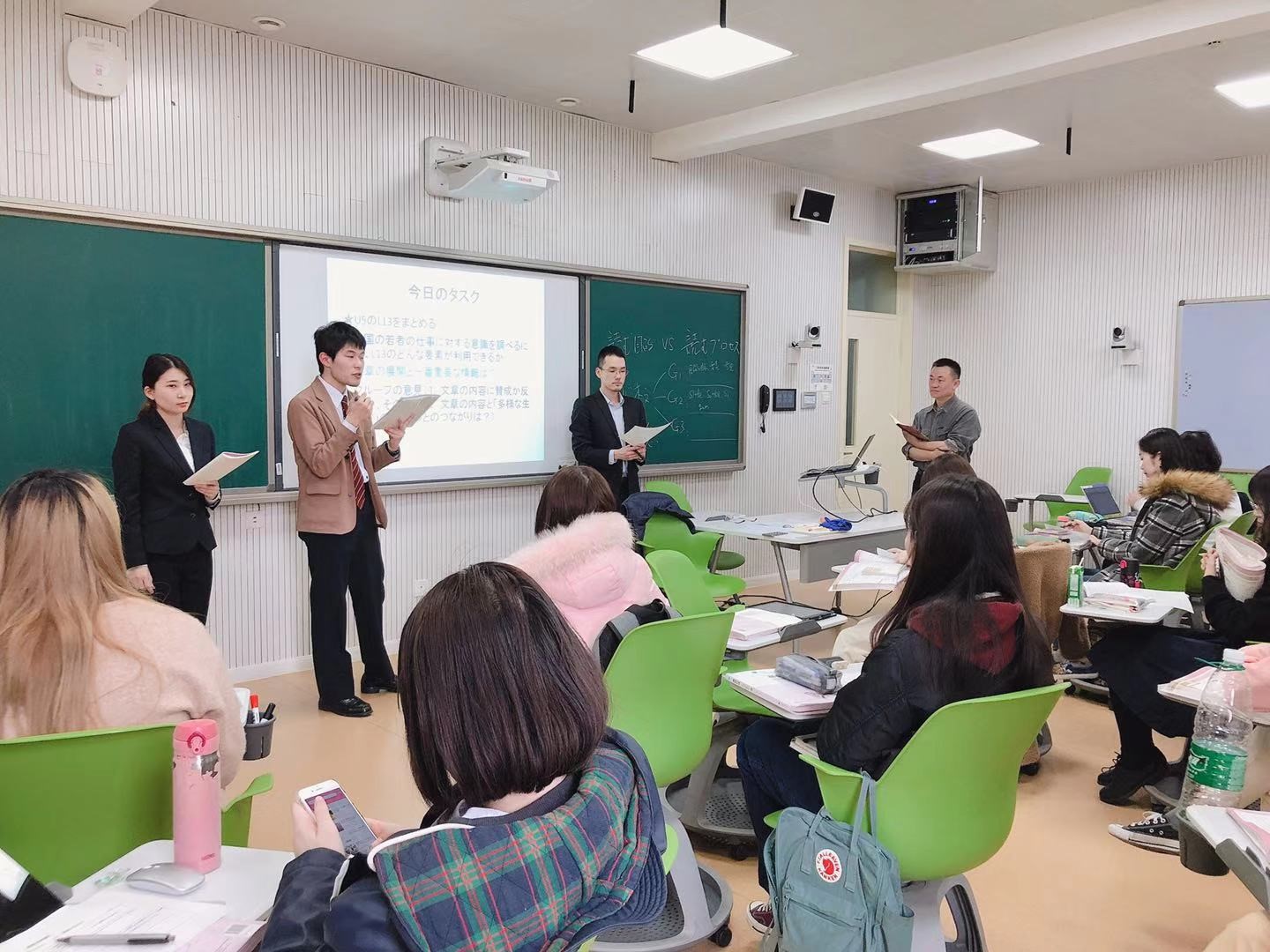 2019年3月11日—3月22日,日本琦玉大学一行(带队教师1人、研究生及本科生4人)来Cool18 日文系进行了为期两周的教育实习。第一周全体实习生观摩日文系教师授课,第二周在日文系教师的悉心指导下,他们认真备课,在初级日语、中级日语、日语口语、日语听力、日语语法、日本历史等基础课上出色地完成了课堂实践。此次活动不仅为日方实习生提供了一线的教学场所,也为Cool18 日文系师生的教与学带来了良多的启迪。另外,通过课堂内外的交流与接触,中日两国学生加深了相互理解,结下了深厚的友谊。