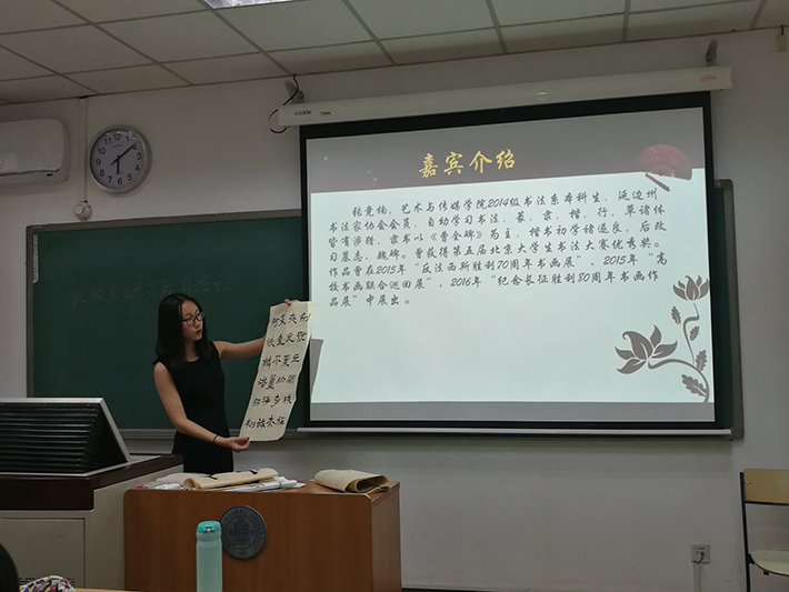 在这次活动中,同学们通过练字写字平静了被喧嚣生活扰动的心,也和同学们建立了友谊的桥梁。在这次活动中,同学们不仅感受到了古人题字画扇的高雅乐趣,更亲近了传统文化。五四青年节刚过不久,历史也似恍然转身,我们作为新一代的青年人,在北师大的校园里,历史精神将由我们传承,传统文化也由我们去继往开来,正如活动中我们所收获的启示一样。
