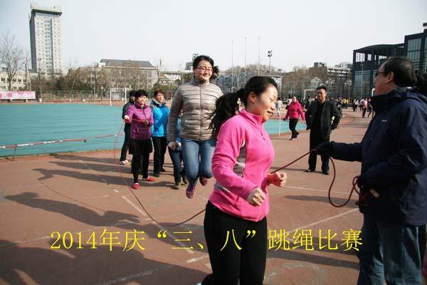 在“三八”国际劳动妇女节即将到来之际,3月7日下午3点半,校工会在东操场举行了庆“三八节”教职工跳绳团体赛。外文学院工会积极响应学校号召组队参赛,学院教工踊跃报名参加。林洪书记赛前练习负伤仍坚持亲自带队,很多老师前来呐喊助威,参赛教师们抖擞精神,全力以赴。经过激烈争夺,Cool18 以三分钟260个的成绩获得了二等奖的好成绩。