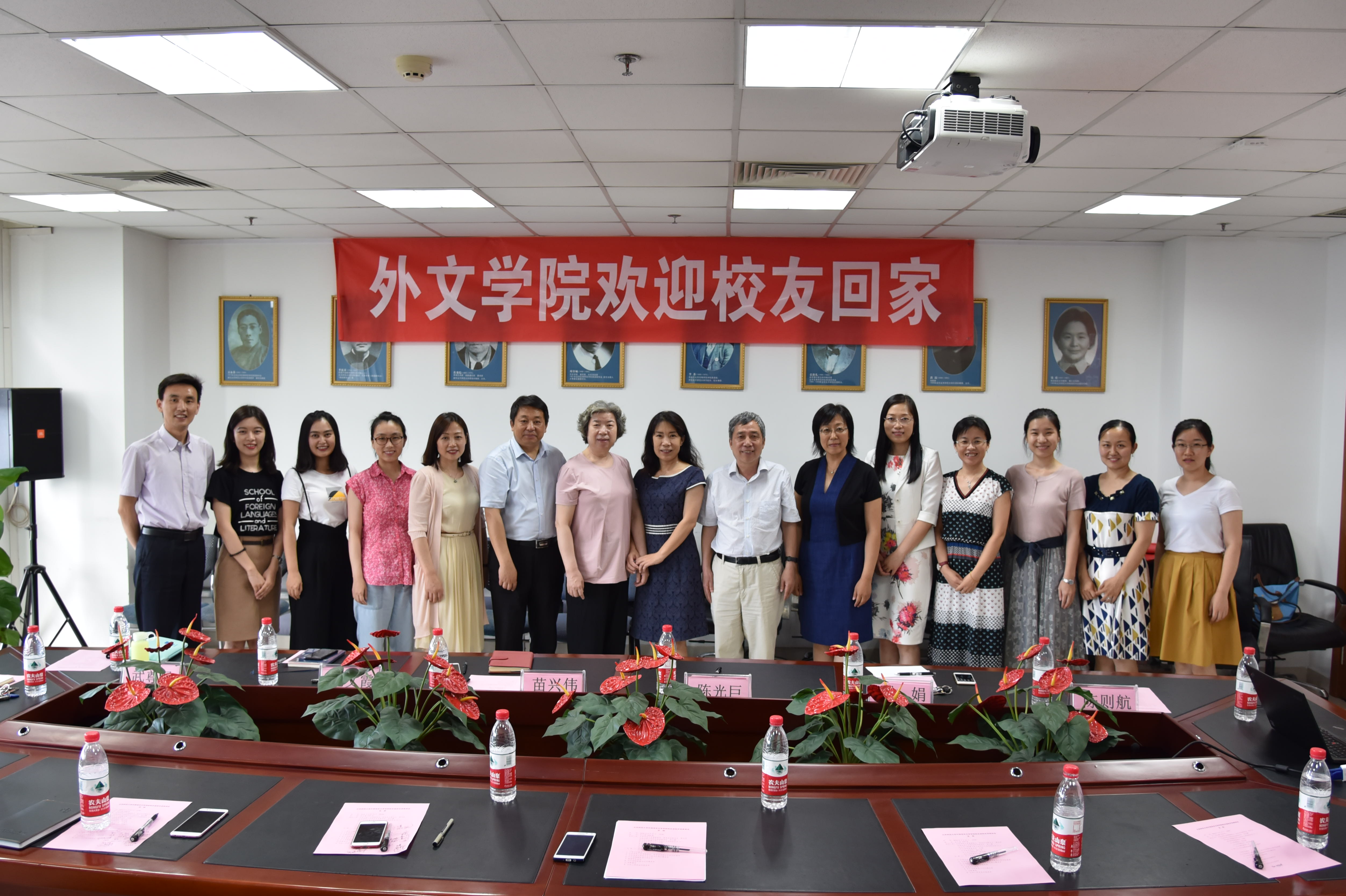 为了积极搭建学院与校友之间、校友与校友之间、学院与社会之间联系的桥梁,促进相互交流和资源共享,达到团结共勉、共同发展的目的,应广大校友的热切期盼,2018年6月27日下午,15名在师大附属中学工作的外文学院校友相约欢聚在后主楼1020会议室,参加首届附中校友返校活动。
