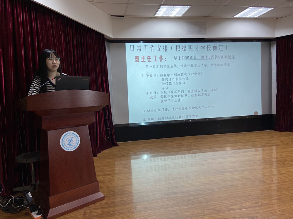 接着,参加过教育实习的2016级学生赵璐,以“过来人”的身份从实习内容、注意事项和心得体会三个方面分享了她的实习经验。赵璐同学详细介绍了作为实习班主任和英语任课老师的工作任务,让即将参加教育实习的同学对接下来的实习有了更清晰的认识。实习期间,建议同学们注意沟通,虚心听取意见、多听课,有眼力见儿。赵璐同学还特别提到了要处理好实习与考研和论文的问题。她提到实习工作虽然很辛苦,但结束时学生的反馈和感言让人感动。
