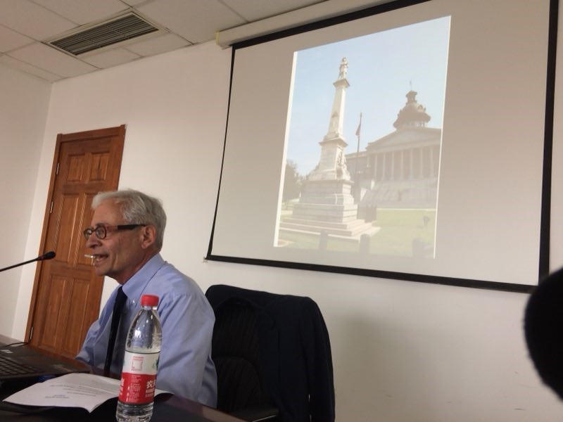 David R.Goldfield教授以图片,文字,个人经历等多种方式向我们展示了美国根深蒂固的种族问题。从美国内战到不久前美国各地掀起南方邦联纪念雕塑拆除潮,David R.Goldfield教授娓娓道来,并提到美国黑人群体内部的差异问题,见解深刻,发人深省。讲座后程大家积极提问,兴趣高涨,同时也廓清了以往对美国南部和美国种族问题的一些误解和疑惑。
