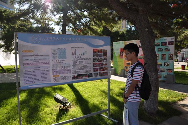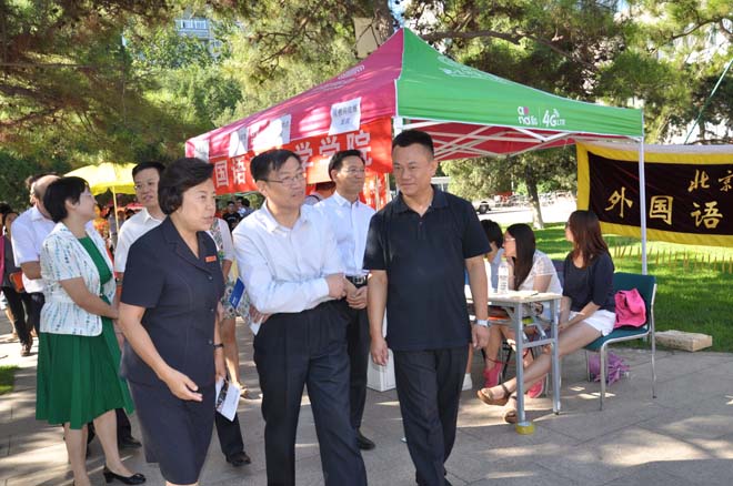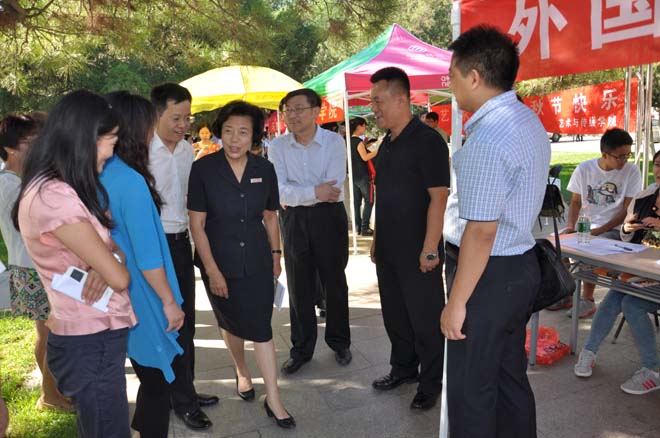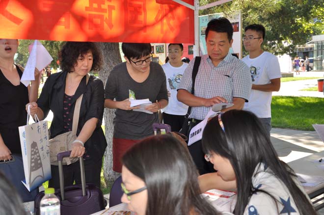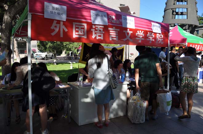 25日一大早,分党委副书记武玉红、团委书记张新颖、新生班主任杨庆云、学生助理姜秉圻以及学生干部和志愿者同学们都早早来到了报到现场。工作人员各司其职,志愿者们更是顶着炎炎烈日,为研究生新生和新生家长们搬东西、扛行李,给新生们进行全程指引。迎新期间,分党委书记林洪,院长程晓堂,副院长苗兴伟也来到了现场,他们与新生家长亲切交谈。学院领导对新生的关注和照顾,使得家长们对于自己的孩子来到外文学院攻读研究生充满了信心。志愿者们耐心细致的讲解,为新生们解决了初到学校的陌生与不便,确保了每一位新生顺利完成报道和入住手续。