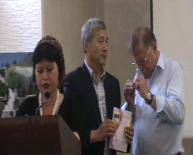 众所周知,二次车臣战争,以及莫斯科多起恐怖事件,使车臣成为世界舆论中恐怖之地,车臣首府格罗兹尼成为恐怖之都,在这里召开莱蒙托夫国际研讨会,有特别意味。李正荣教授去年接到会议邀请之时,恰逢伏尔加格勒恐怖案件,但经过慎重考虑,决定赴会。李正荣教授对“莱蒙托夫奖章”颁奖主持人幽默的说,这份奖项应该颁发给中国真正的莱蒙托夫翻译家、研究家,奖励给他,是一个误会,很像是奖励给一只勇敢地从中国闯到格罗兹尼来的幸运的大熊猫。