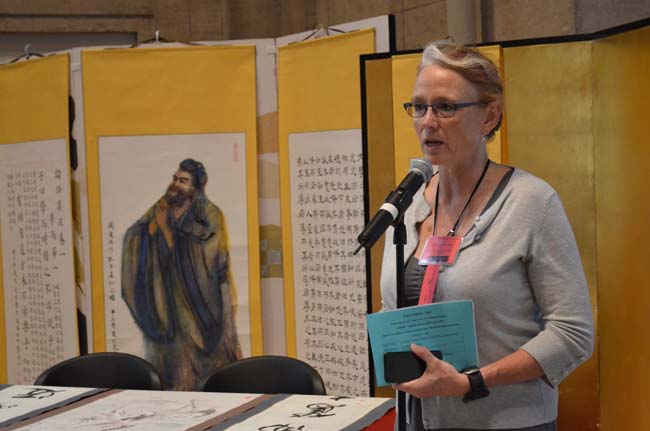 旧金山州立大学吴彦伯副校长在开幕辞中强调语言学习和文化交流对建立和平世界的重要性,并表示旧金山州大孔子学院将一如既往,全力支持旧金山地区汉语教学及中美文化交流。亚洲艺术博物馆语言教育部部长Deb Clearwaters女士在致辞中表示期望与旧金山州大孔院进一步加强合作,共同推广中国文化。有多幅作品参展的学生代表Sophia Qin和Alex Sima与现场观众分享了参加“汉语桥杯”比赛的快乐经历。