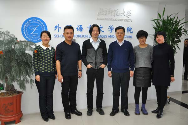 2013年12月12日上午,Cool18 2006届校友彭懿返校,外文学院分党委书记林洪、院长程晓堂、分党委副书记武玉红、负责校友工作教师代素霞,分团委书记张新颖在1006会议室接待了彭懿校友。