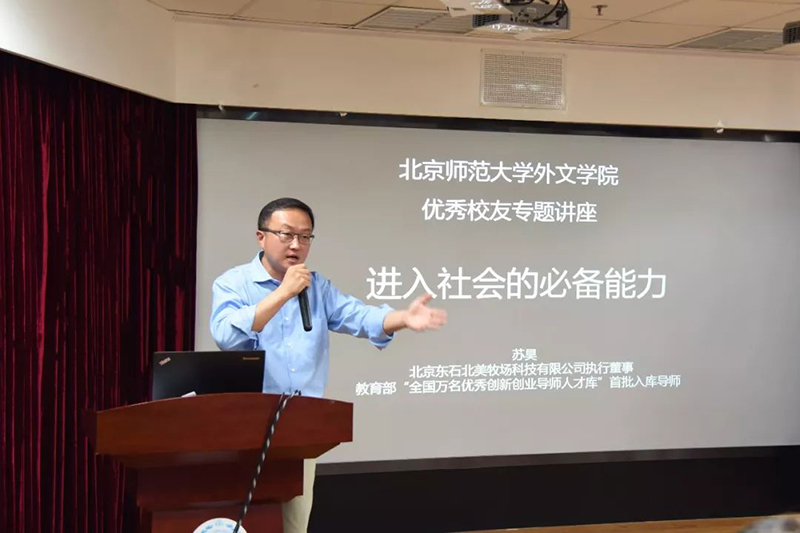 2018年3月31日晚18:00,外文学院分团委于后主楼914会议室成功举办“外文学院优秀校友专场讲座”。本次讲座有幸邀请到外文学院三位1994届毕业校友,分别为北京市三十五中副校长兼志成小学校长刘云凤学长,北京东石北美牧场科技有限公司执行董事苏昊学长,北京东石北美牧场科技有限公司副总经理王刚学长为大家分享。外文学院分党委副书记亓振华、分团委书记张新颖、校友分会副秘书长代素霞参加了讲座。学院近100名学生骨干学习了讲座。