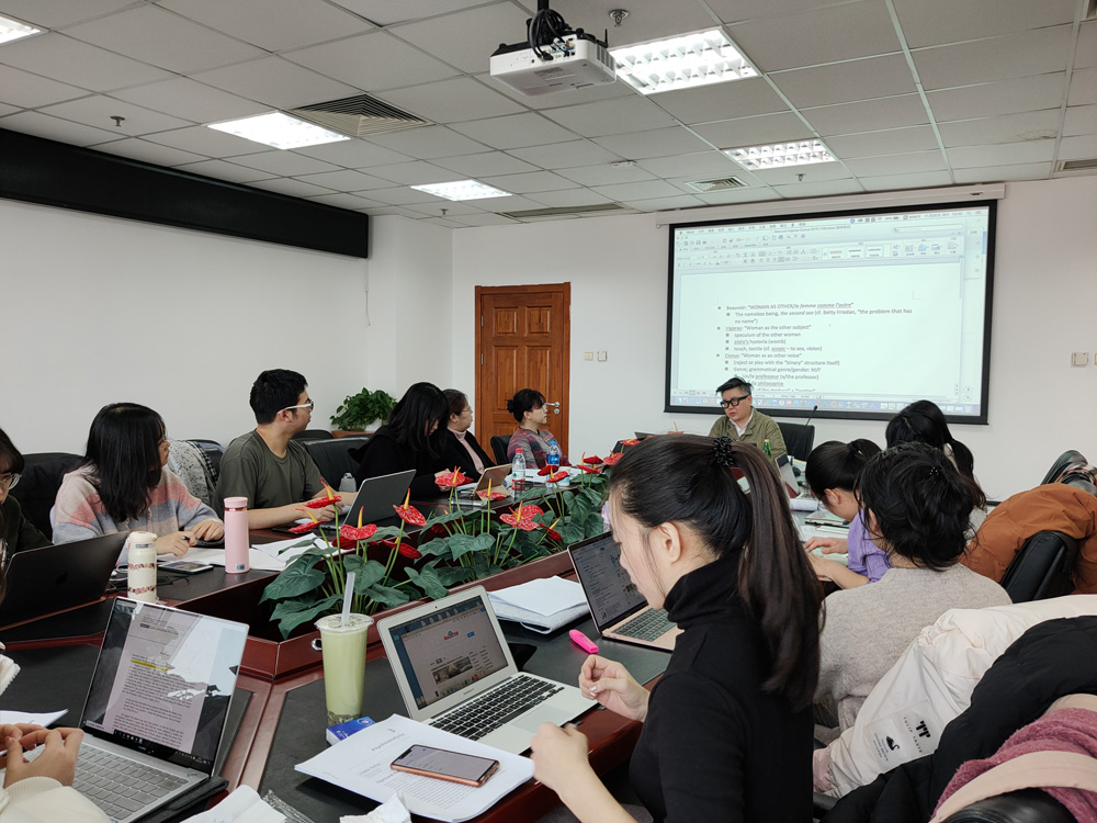 受国家外国文教专家项目资助,应Cool18 王楠教授邀请,美国纽约城市大学让·雷学院(John Jay College, CUNY , City University of New York),哲学系教授Kyoo Lee于2019年11月22日-12月6日之间,在Cool18 举办了文学哲学“理论中的弗吉尼亚” (Theoria with Virginia)系列讲座。讲座吸引了本校及外校共30多位教师和学生前来听讲。为期三个星期,24个学时的讲座,Lee教授的讲解细致入微,王楠教授颇有深度点评,让令人生畏的理论不再晦涩无比,帮助学生找到理论与小说间的切入点和研究角度,带给学生对文学作品和文化日常现象深刻的思与辩。本次讲座结束时,研究生精彩纷呈的个人汇报给本次研习画上了圆满的句号。
