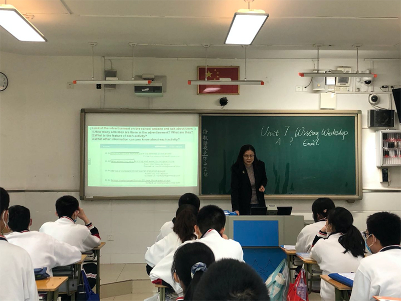 首先,由陈经纶中学高中部的汪波老师和韩国凤老师展示的是一节写作课,内容为北师大版高中英语必修三第七单元Writing Workshop: A formal email。在这一节80分钟的合作课中,汪波老师利用第一课时引领学生完成写作前的活动。经过前期说课时专家们的指导后,汪老师逐渐有了把本节课的重点放在范文内容的获取与梳理上,首先分析了该封邮件包含了哪些内容,提出了相关问题等。同时结合陈经纶中学的特色对教材的活动进行改编,贴近学生的生活。
