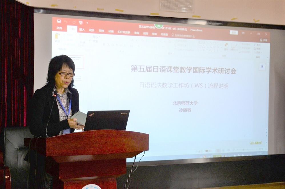 日本国际交流基金会北京日本文化中心高桥耕一郎主任发表了简短的致辞。他说:本次研讨会围绕日语语法教学展开,随着教育にとっての文法とはどんなものか」的基调报告。