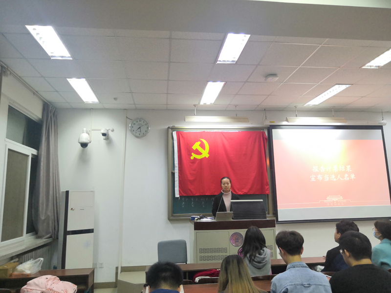 接着,张元祺同学对各位支部委员候选人的情况进行了简要介绍,监票人田紫玲同学和计票人邓艳利学分发选票,进行投票、监票、计票工作。