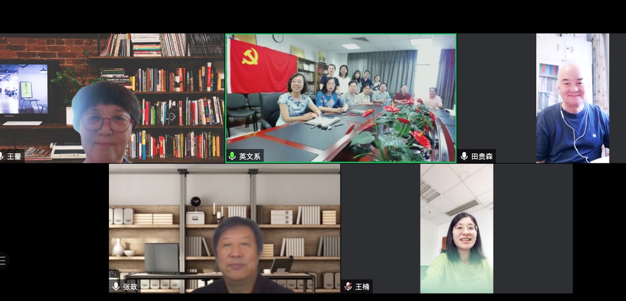 英文系教工党支部于2021年9月3日上午,在后主楼1020会议室和腾讯会议同步召开新学期全体党员大会。在支部会议上,英文系党支部书记孙晓慧老师带领支部成员学习了《2021年8月党支部组织生活指南》,并基于此次组织生活的主题,学习了北京市委教育工委最新修订的《北京普通高等学校党建和思想政治工作基本标准》,尤其对一级指标中的“基层党组织建设和作用发挥”模块进行了深入的学习和领会。孙晓慧老师鼓励英文系全体党员教师一起参与到党支部的建设中,共同建设好英文系党支部,发挥党员先锋模范带头作用。