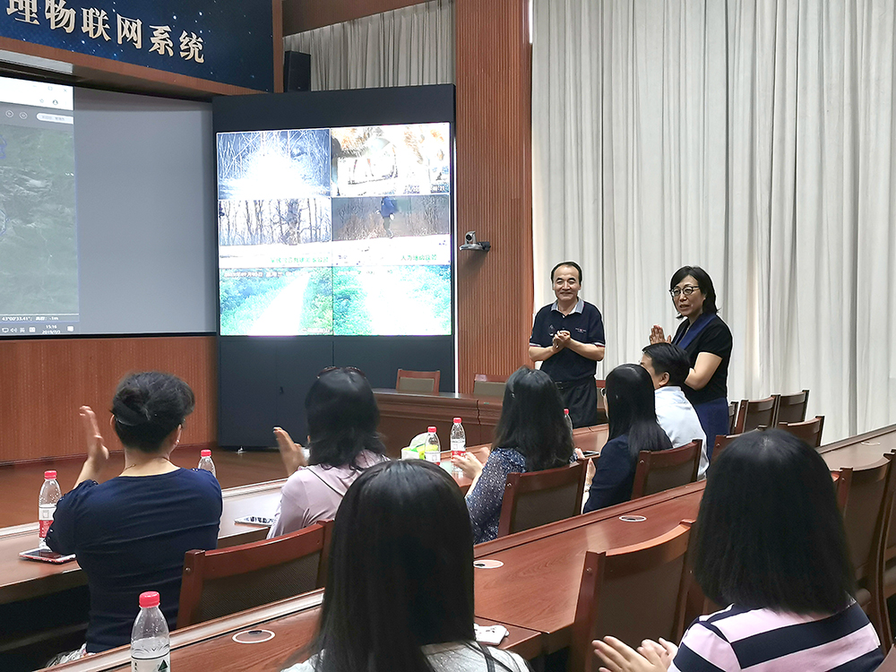 研究中心葛剑平教授为老师们详细介绍了东北虎豹国家公园自然资源监测与管理物联网系统。从生态物种保护的重要性到东北虎豹国家公园体制改革试点的成功、再到科研团队工作生活的酸甜苦辣,葛剑平教授用幽默风趣的方式向老师们娓娓道来。