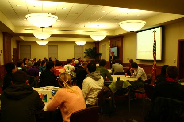 本次讲座的主讲人,著名金融学教授Donald Lien先生来自得克萨斯大学圣安东尼奥分校工商学院, Donald Lien 先生也是该校孔院院长;另一位主讲人黄春媛博士,来自南开大学,目前在得克萨斯大学圣安东尼奥分校做高级访问学者,她是孔子学院总部全球首位“孔子新汉学计划”高级访问学者。两位主讲人用经济学理论,通过数据和图片阐述了21 世纪中国经济发展的可持续性。为听众了解中国、解析中国经济发展、判断中国经济发展趋势提供了极具参考价值的理论依据和数据支持。随后,听众基于演讲内容和他们对中国经济的了解和研究,提出了许多理论和实践上的问题,两位专家一一解答。出席这次讲座的有俄大经济学系主任Dr. Lex Holmes,俄大孔院院长苟学红女士,中方院长黄易青博士、访问教师连美丽和杨凤珍老师、俄大孔院管理助理桂简易先生以及经济系学生近50 人。讲座结束后,许多听众意犹未尽,继续和俩位专家探讨学术问题,原本一个小时的讲座,持续了近两个小时。