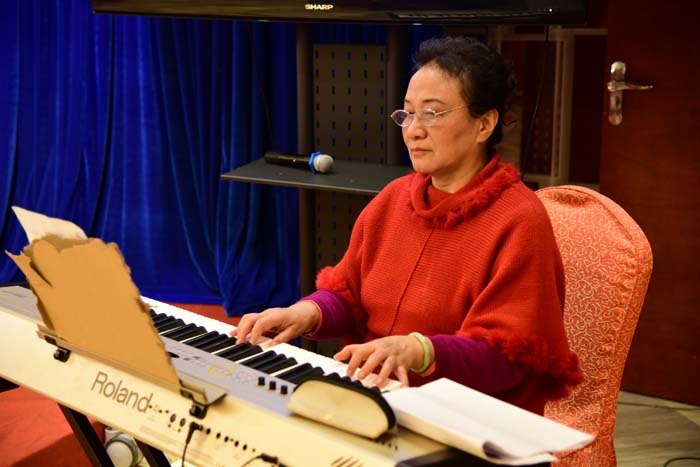 离退休的老师们纷纷引吭高歌。陈秋凡、卢维庸、保学文、曹宝健、陶昌升、郑守钧等老师,先后用俄语、德语、意大利语、英语演唱了外国歌曲。与以往一样,邹映辉老师技艺精湛的即兴伴奏,博得了大家的一致称赞。