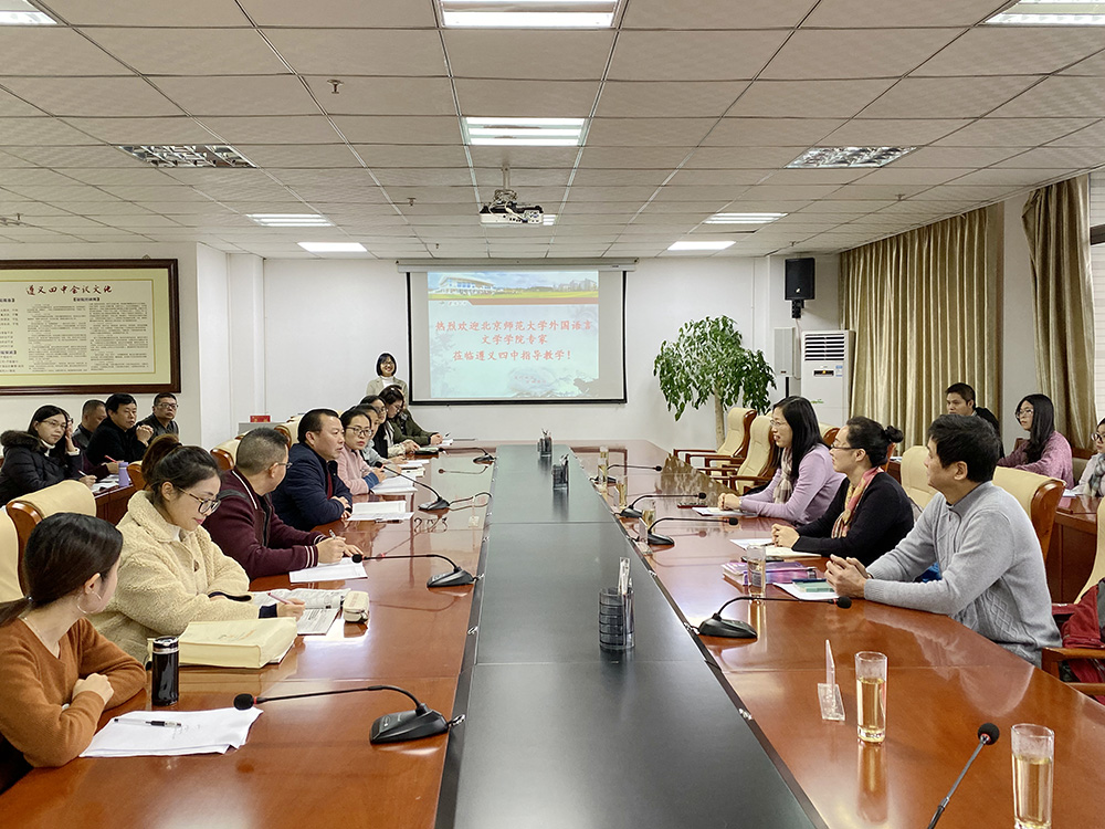 11月28日下午,志愿团来到遵义四中,开展听课、评课和交流活动,指导高中英语阅读课与写作课,与参会教师进行了讨论交流,指出课堂中存在的问题,并提出针对性的建议。11月20日,志愿团在遵义五中开展三场专题讲座,遵义市教育科学研究院副院长樊厚义、遵义市汇川区教育局党委委员、副局长王旭、遵义市第五中学党总支书记、校长樊勤良、遵义市教育科学研究院义教室主任王文庆出席开班仪式。外文学院副院长陈则航、遵义市教育科学研究院副院长樊厚义、遵义市汇川区教育局副局长王旭分别致辞,《中小学外语教学》编辑部副编审裴栓保向参加讲座的英语教师赠送期刊。陈则航教授的讲座主题为《高中英语课程标准思维品质及培养路径解析》,指导如何培养学生英语学习思维和运用能力;孙晓慧副教授的讲座主题为《英语学科核心素养下的中学英语阅读教学理念创新与方式变革》,以英语阅读教学为切入点,介绍阅读教学理念和教学方法;程晓堂教授的讲座主题为《中学英语教学如何实现成绩与能力双赢》,通过丰富的中学英语教学案例,深入浅出的为老师们讲解了如何在提高学生英语成绩的同时,切实提高学生英语学习兴趣和英语知识应用能力。讲座交流现场学习气氛热烈,老师们纷纷表示受益匪浅。