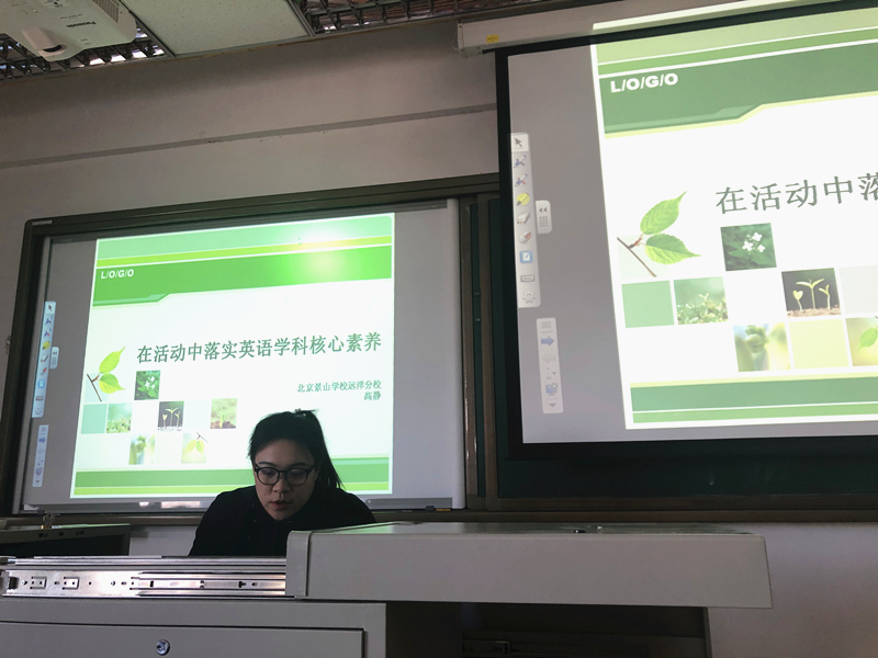 随后,北京景山学校远洋分校的高静老师就自身参加项目的收获与体会,进行了“在活动中落实英语学科核心素养”的分享。改进前,她过度关注表层信息,忽略了主题意义的探讨,且课堂由教师主导。在研讨磨课的过程中,她逐步意识到了深入挖掘教材、学生自主学习的重要性,让悦读开启心智,提高学生学用能力。她指出,在今后的教学中将努力提高专业素养,将指向学科核心素养发展的英语学习活动观贯彻到底。